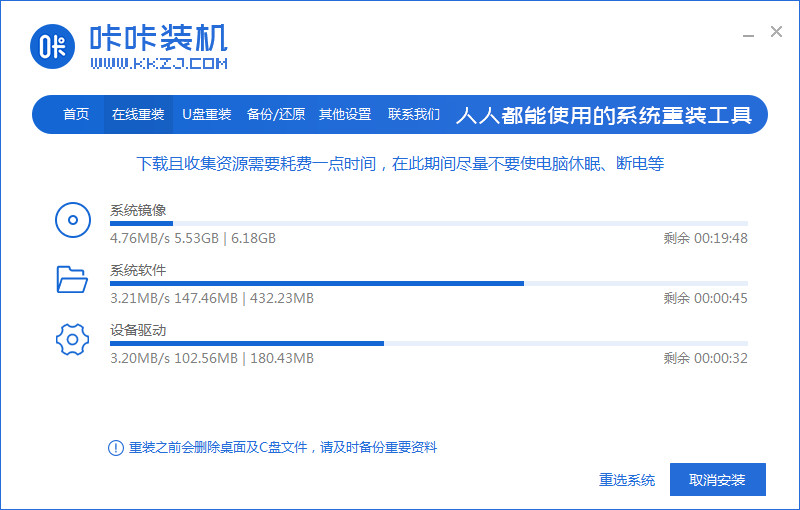 2.此时软件就会开始下载系统镜像文件,此过程较长,我们耐心等待完成。