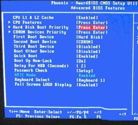 图 2:高级BIOS设置(Advanced BIOS Features)界面,首先选择硬盘启动优先级:Hard Disk Boot Priority