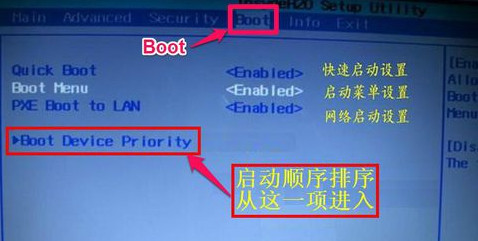 2、把光标移到Boot项,选择Boot Device Priority这一项回车,如下图所示: