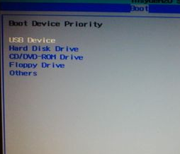 通过按F5和F6实现的,即按F5值升1,F6减1。然后呢从u盘启动是里面的usb device,通过上下移动让光标到达这个选项,通过按F5或F6让它到达选项的第一位。