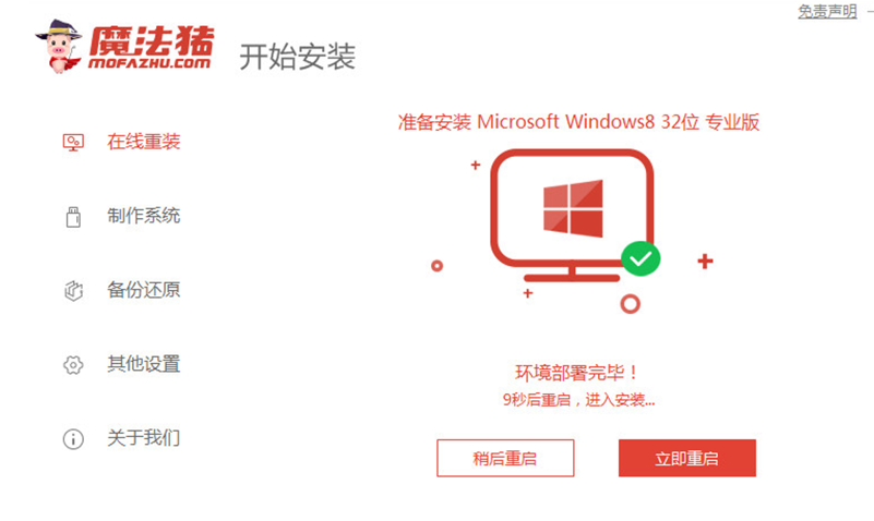3、等待部署系统安装环境,提示环境部署完毕后,点击立即重启。
