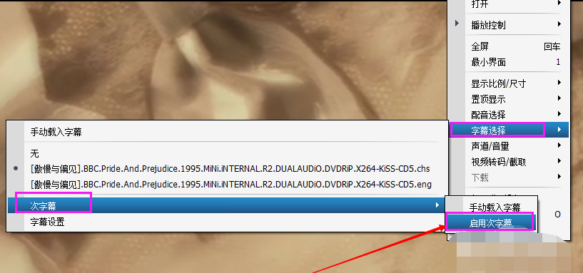 如何才能既让影片显示中文字幕,又让影片显示英文字幕呢?