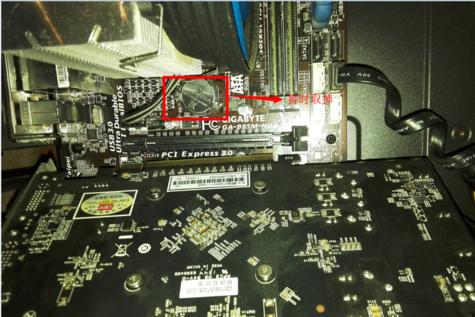如果电池不好取,我们可以先把显卡取下来,等待15-30分钟,主板重新安装好电池之后,再安装显卡。