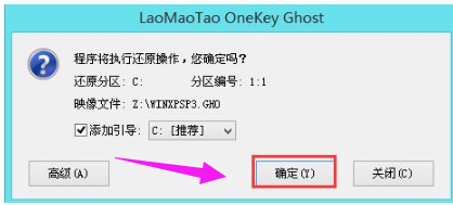 将系统镜像文件添加进来后,在下面的磁盘分区列表中,我们选择C盘作为系统盘,然后点击“确定”按钮