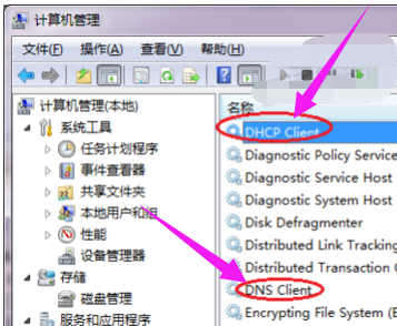 和上面一样,在服务窗口中分别找到并启动“DHCP Client”、“DNS Client”、“Server”、“TCP/IP NetBIOS Helper”、“Workstation”服务。