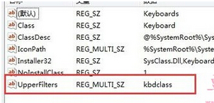 接着还是在注册表刚刚的位置新建我们刚刚删除的项新建添加多字符串值“UpperFilters”项,修改内容为“kbdclass”选项,重启设备就会发现可以使用键盘了,