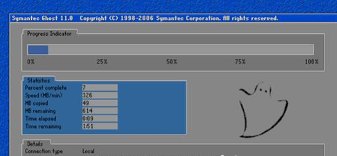 一般在开机时不停地按上下键然后选择进入还原程序开始还原。还原后自动重启进入桌面。