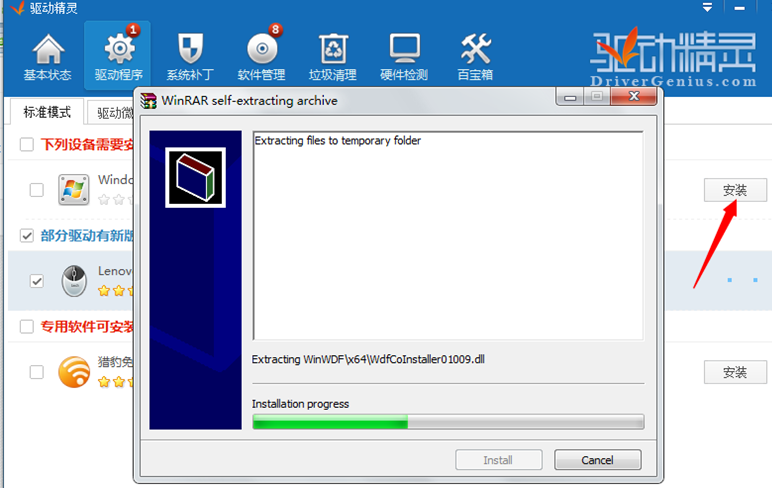 在百度搜索“驱动精灵”,点击下载,安装“驱动精灵”