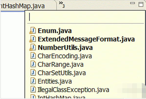 这组Eclipse快捷键将帮助你在打开的编辑器之间浏览。使用ctrl+page down或ctrl+page up可以浏览前后的选项卡,但是在很多文件打开的状态下,ctrl+e会更加有效率。
