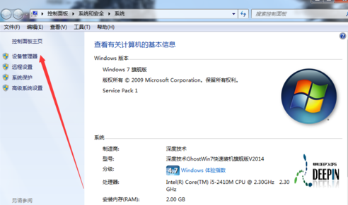 弹出的“系统”界面,选择“设备管理器”。