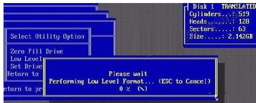 确认后就开始进行硬盘的低级格式化操作了,并会有详细的百分比进度显示。