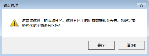 ②右键点击u盘,选择“格式化”,此时会弹出提示“这是该磁盘上的活动分区。磁盘分区上的所有数据都会丢失。您确定要格式化这个磁盘分区吗?”的窗口,点击“是”即可。如下图所示: