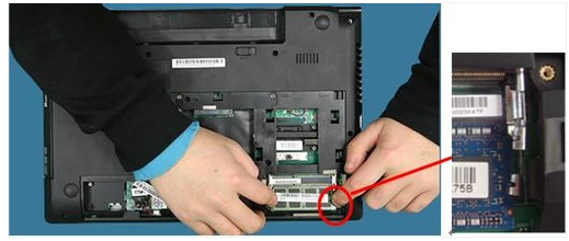 先拆卸笔记本电池,确保笔记本隔离电源,避免计算机在安插内存条是开机烧坏内存槽