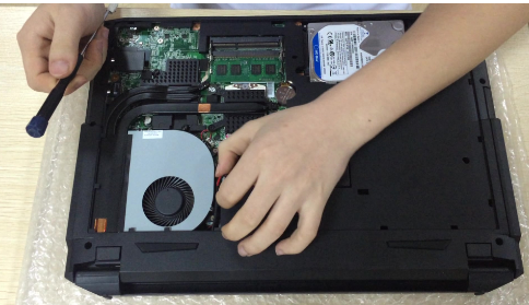 故障之二:笔记本电脑越用越慢,并出现死机无故重启等问题,机身温度过高,听不到散热风扇工作的声音。原因有可能是笔记本电脑的散热风扇在安装的时候没有达到标准,安装不合格,所以导致散热风扇不能正常运行。我们把笔记本的散热风扇拆下重装即可。