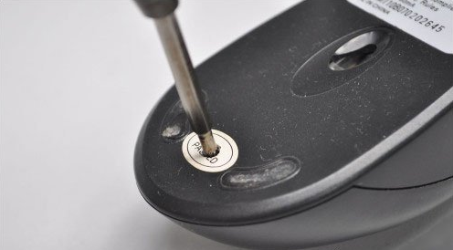 要修复的就是上图这支鼠标了,我们先把质保标签下的螺丝拧开,拆开鼠标