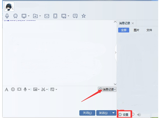 首先打开与一位好友的聊天窗口,选择【消息记录】选项,再点击【设置】按钮;