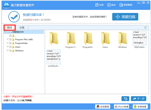 在【路径】一栏中,找到【Misc.db】、【Msg2.0.db】、【Msg3.0.db】三个文件中的其中一个。将其勾选后直接点击【下一步】按钮;如果没有扫描到文件,则可以选择【深度扫描】重新扫描一次