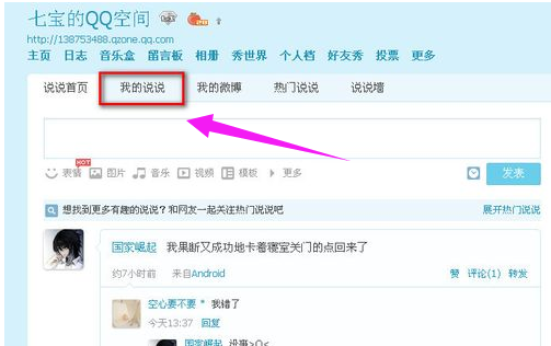 进去后,我们首先看到的是朋友们的说说,我们点上面导航,“我的说说”。