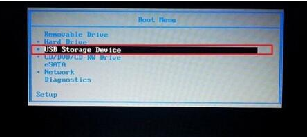 2,进入快捷菜单的话,直接选择带有‘USB’字样的,点击回车键Enter,如果看不到USB,则重开机按F2进Bios菜单