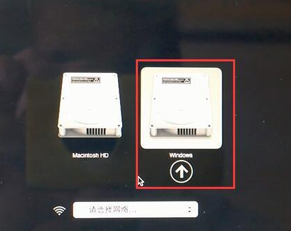 完成之后重启电脑,开机按住【alt】键,出来的菜单我们可以看到第一个是原先的苹果系统,第二个是我们刚刚安装的windows系统,选择【windows】进入安装完成