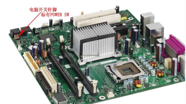 在主板上找到电源开关POWER和重启开关RESET SW。