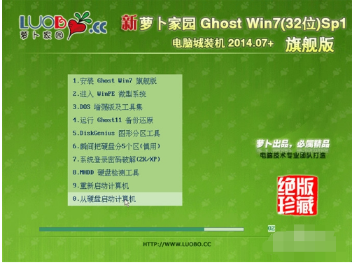 1、先下载一个ghost版的win7操作系统,用“新萝卜家园 Ghost Win7(32位) Sp1 电脑城装机 2014.07+旗舰版”做演示。