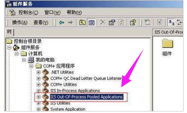 找到“组件服务”->“计算机”->“我的电脑”->“COM 应用程序”->“IIS Out-Of-Process Pooled Applications”。