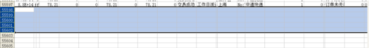 4,不选中一个单元格,而是选中多行,注意是整行,然后粘贴。