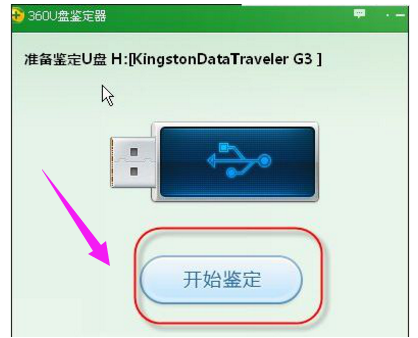 打开“U盘鉴定器”,插入U盘,点击“开始鉴定”鉴定的时候最好不要拔出U盘。