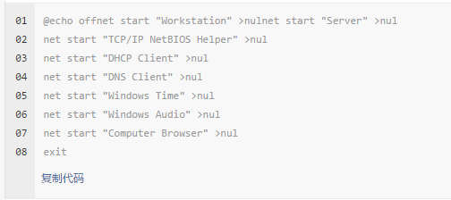 可将以下命令另存为.bat批处理文件,一次开启这些服务: