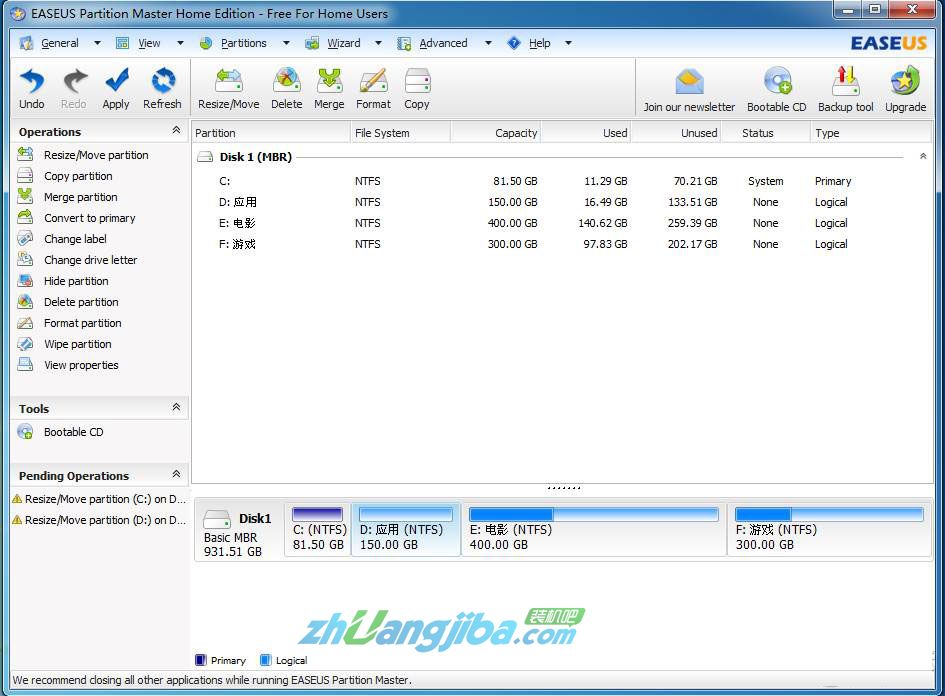 1、我们要安装给电脑扩容的磁盘分区软件——易我分区大师,英文名叫EASEUS Partition Master