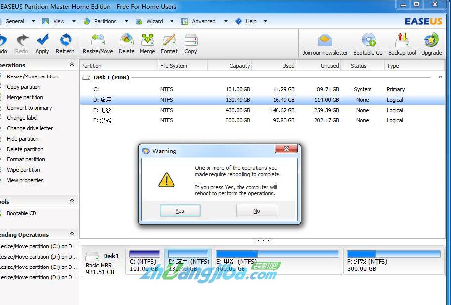第五步:点击Apply按钮执行,接着根据提示点击Yes,然后在弹出的窗口继续点击yes,接着电脑便会重启。