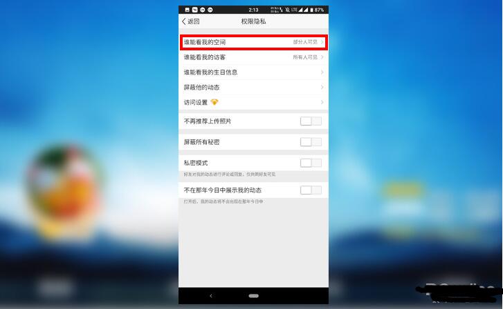 4、点击【谁能看我的空间】。