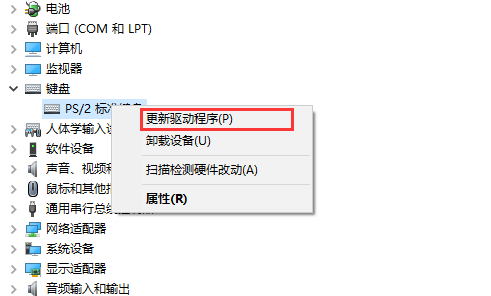 3.如果上面都没问题,可能是键盘驱动损坏了,这时候只需要"更新驱动程序"即可