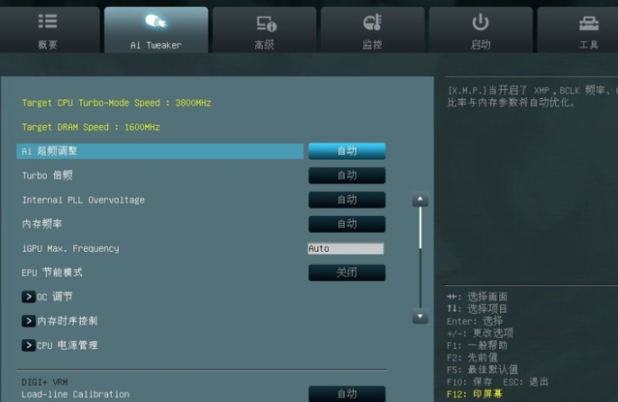 5、“Ai Tweaker”选项就是超频选项了,不建议小白使用。自动模式是默认模式,不属于超频。
