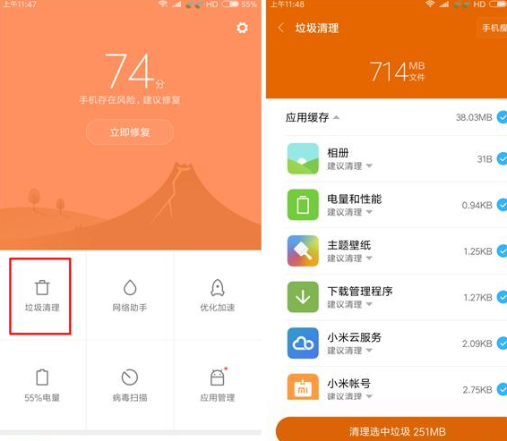 以上一些方法是比较常用的清理手机内存方式,想简单的方法就是使用手机管家的垃圾清理功能一键解决。