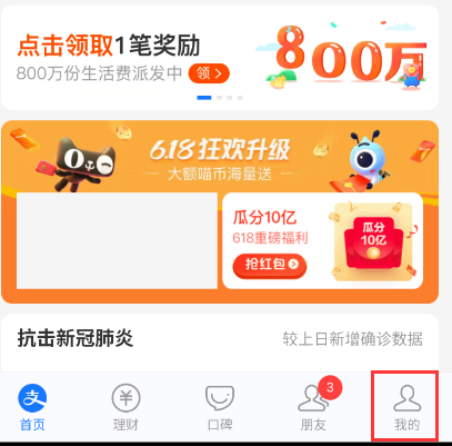 2、在打开的支付宝页面中,点击“我的”,如图。