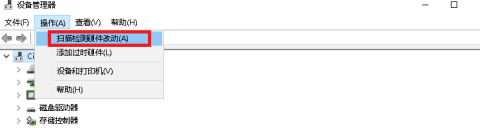 7.点击上方菜单的操作--选择扫描硬件改动。