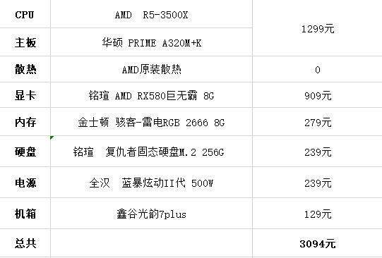 1、选择R5-3500x作为这台主机的cpu是因为采用了如6核6线程的设计,也是amd为数不多的超线程的cpu对标英特尔i5-9400f,使用盒装不需要另外购买散热器。a卡RX580性能也不弱,这套搭配在这套配置中算比较优秀的了。