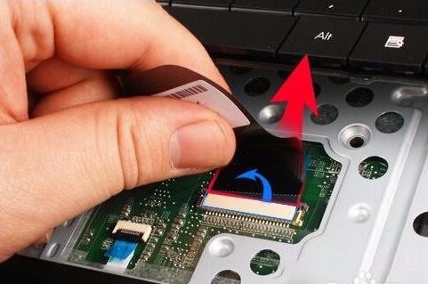 4、拆下键盘的时候记得把排线也一起取下,别的排线千万不要动。如果遇到连接比较紧的用工具翘起,不要用手去暴力解决。