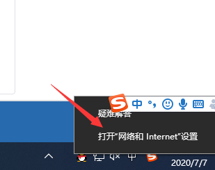1)右击网络图标,选择打开网络和Internet设置。