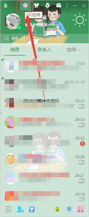 1、登录电脑版的QQ,然后在主界面点击qq空间图标进入。