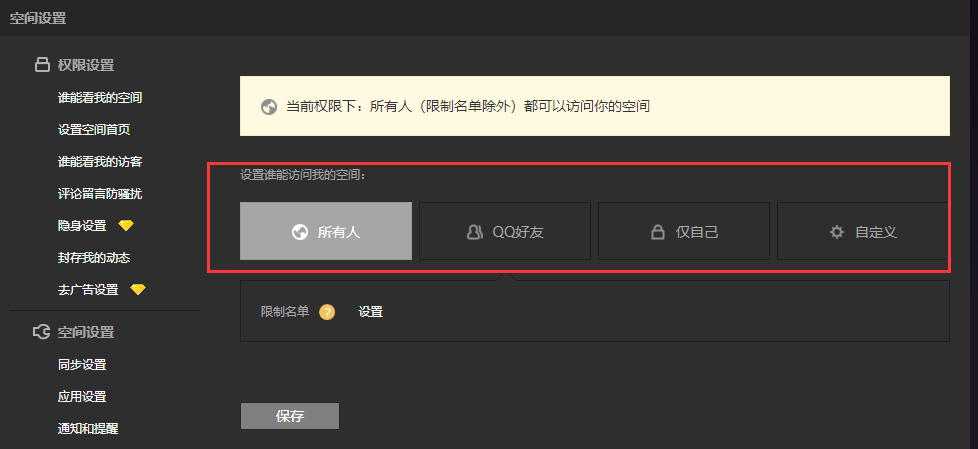 以上就是qq空间权限设置的方法啦,手机上也是可以设置的哦,但是操作跟电脑上的有所不同。