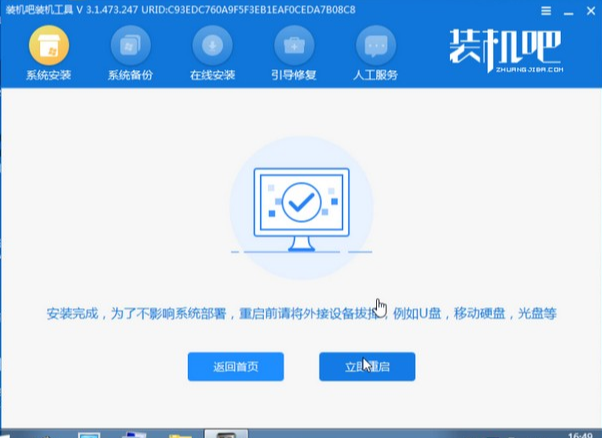 11.等待系统安装完成后,按照提示拔下U盘,然后单击“立即重启”。