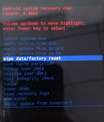 5.然后选择选项删除所有用户数据,然后按电源按钮确认。