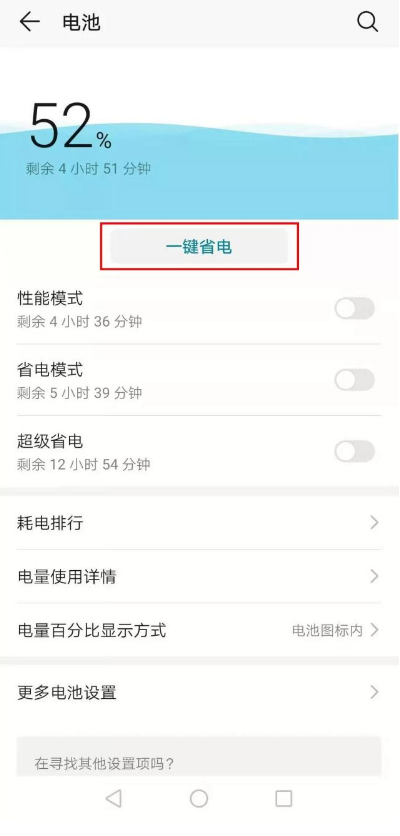 2、点击设置-电池-一键省电,检测手机状态,并根据提示项进行优化。