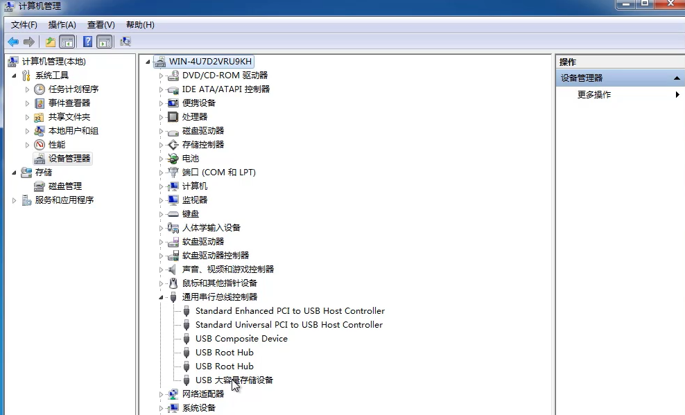 3、通过打开计算机管理的设备管理器,可以在通用串行总线控制器里面查看U盘驱动是否安装,如果没有安装的话可以使用一些驱动软件安装驱动。