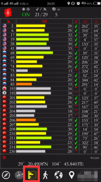 8、第三个按钮可以看到卫星的信号和可用的卫星,打勾代表是目前已经连接到并可用的卫星。