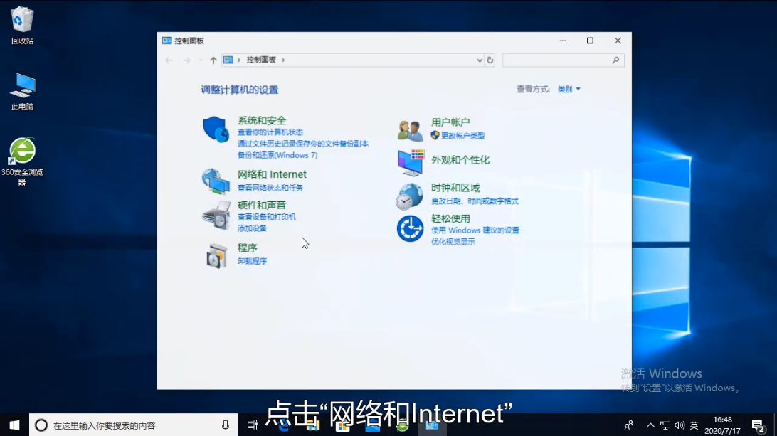 1、点击开始菜单,打开控制面板,然后在控制面板里面打开“网络和Internet”。