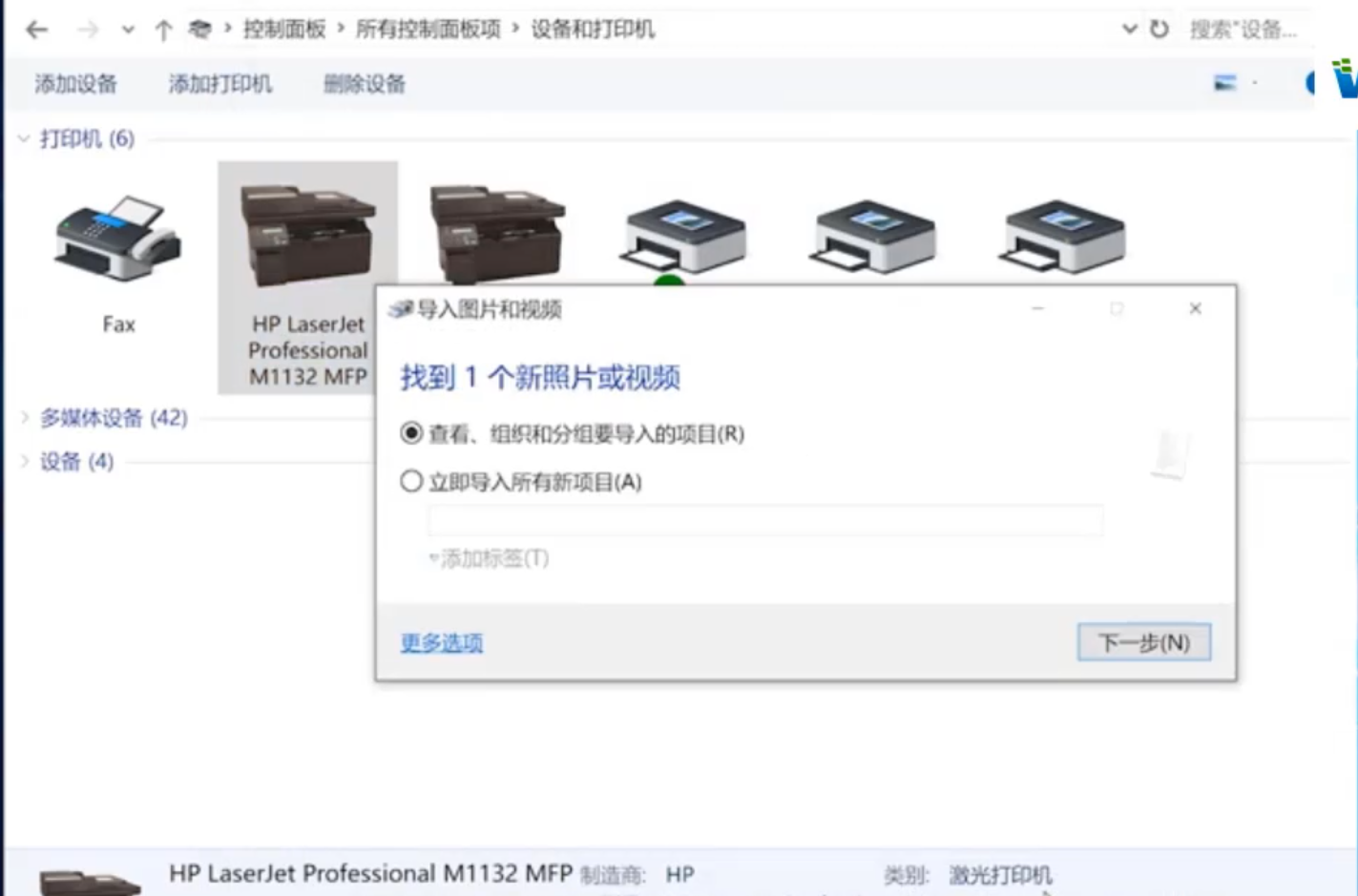 6.在跳转的界面中点击“扫描”,“扫描完成后弹出的对话框点击”下一步“。